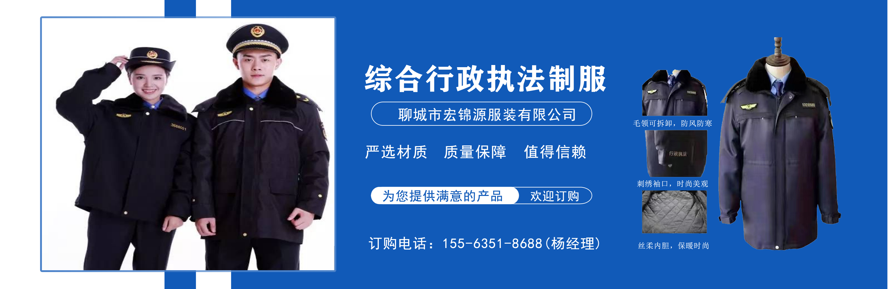 綜合行政執(zhí)法制服,交通執(zhí)法服裝,應(yīng)急管理執(zhí)法標志服,市場監(jiān)督管理標志服,農(nóng)業(yè)執(zhí)法服裝,生態(tài)環(huán)境保護制服,文化市場執(zhí)法服,城管標志服裝廠,衛(wèi)生監(jiān)督制服,六部門標志服廠家-聊城市宏錦源服裝有限公司 公司簡介/ ABOUT
